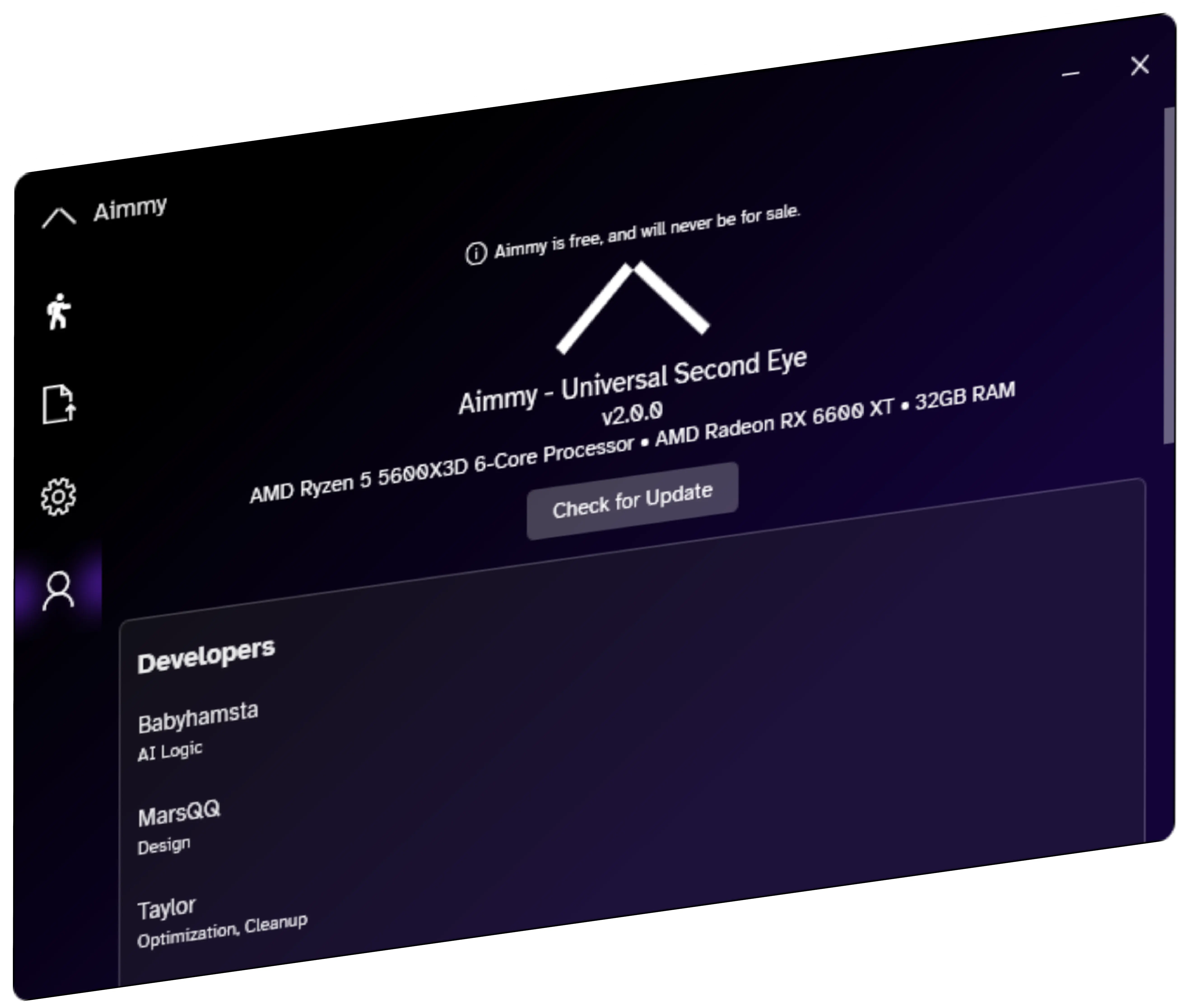 Aimmy is a passion project founded by a developer and a designer loved in their respective communities willing to venture into AI. As the project is a passion of ours and not a business, it is not in our best interests to make as much money as possible from this project.
